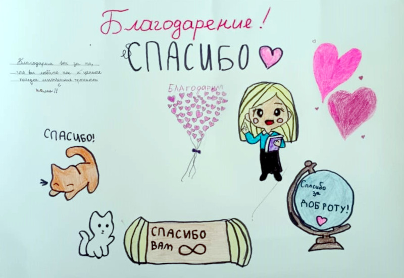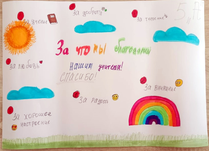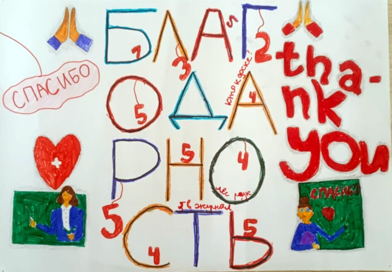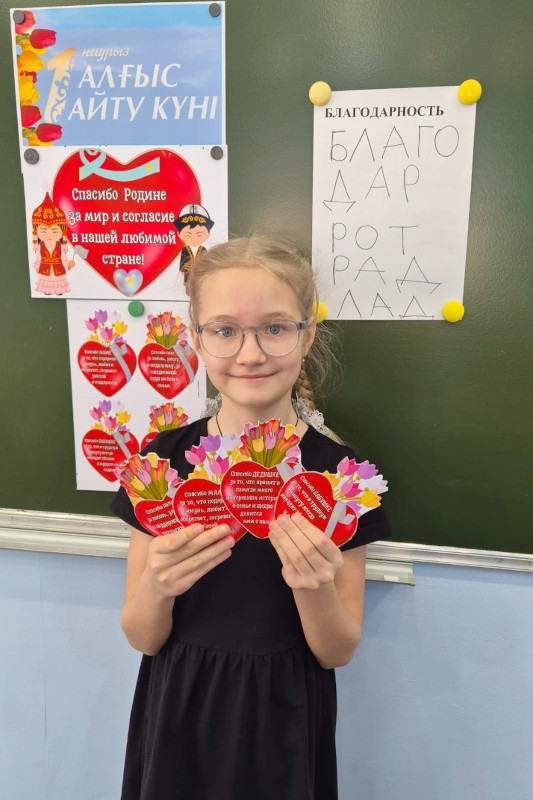 5-6 сынып оқушылары Алғыс айту күніне арналған постерлер жасау бойынша шығармашылық акцияға қатысты. Балалар үлкен қызығушылықпен және шабытпен достық, бейбітшілік және өзара көмек нышандарын бейнелейтін жарқын плакаттарды безендірді. Өз жұмыстарында оқушылар ата-аналарына, мұғалімдеріне, достарына және Отанына алғыс білдірді.