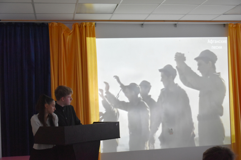 Біздің мектебімізде жыл сайын 15 ақпанда аталып өтетін Ауғанстаннан әскерлерді шығару күніне арналған жалпымектептік сынып сағаты өтті. Дәл осы күні 1989 жылы кеңес әскерлерінің шектеулі контингентін Ауғанстан аумағынан шығару аяқталды. Бұл күн ел тарихындағы ең күрделі беттердің бірінің аяқталуының символына және Отаннан тыс жерде әскери борышын өтеген интернационалист жауынгерлерді еске алу күніне айналды.