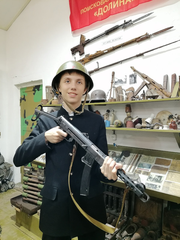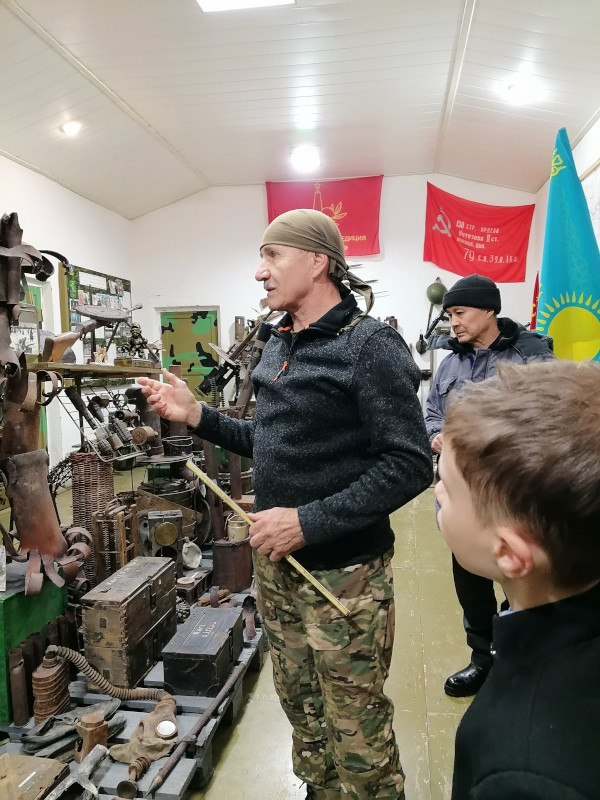 Экскурсию проводил основатель клуба Александр Анатольевич. Ребятам разрешили надеть на себя каски и автоматы. Прикоснуться к орудиям и боеприпасам. Также, учащиеся осмотрели спортивный зал клуба, где установлены снаряжения для ребят военно-спортивного клуба.