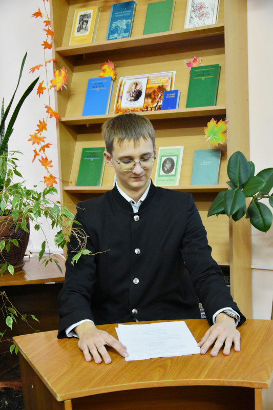 Учащиеся 9–10 классов подготовили выразительное чтение стихотворений Есенина. Их выступления звучали эмоционально и искренне, передавая характерные для его произведений образность, лиризм и любовь к родной природе. Каждое стихотворение было встречено вниманием и живым откликом в зале.