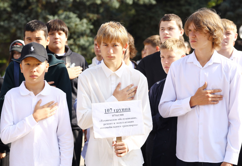 Праздничная линейка была открыта исполнением Государственного гимна Республики Казахстан.