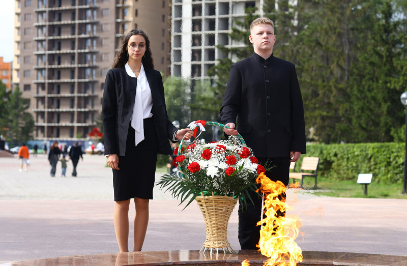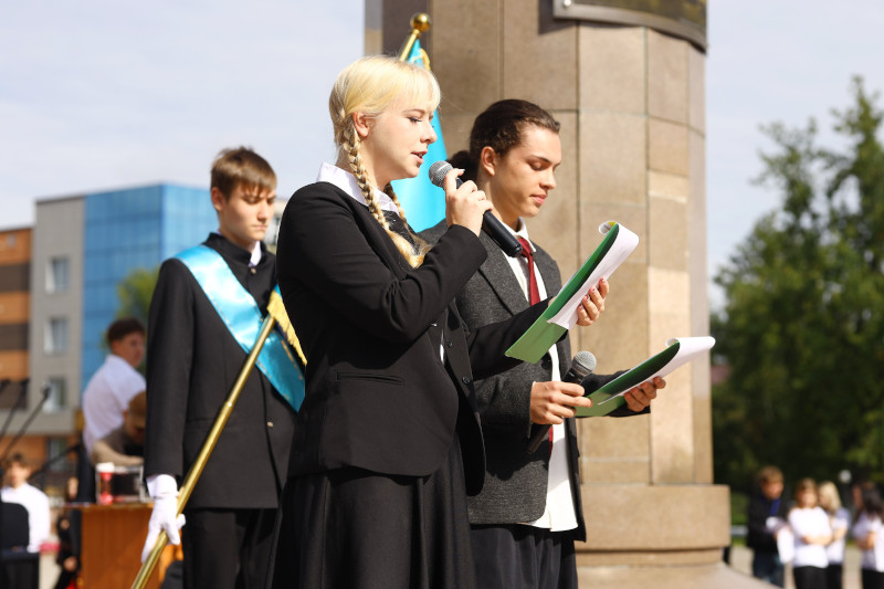 Торжественная церемония возложения цветов к мемориалу Вечного огня, увековечившему память павших в Великой Отечественной войне, и к памятникам Карасаю и Агынтаю, защитникам родной земли, стала одним из ключевых моментов мероприятия. Лучшие учащиеся школы и колледжа приняли участие в этом событии. Этот момент напомнил всем о значении исторической памяти, о преемственности поколений и гордости за свою страну.